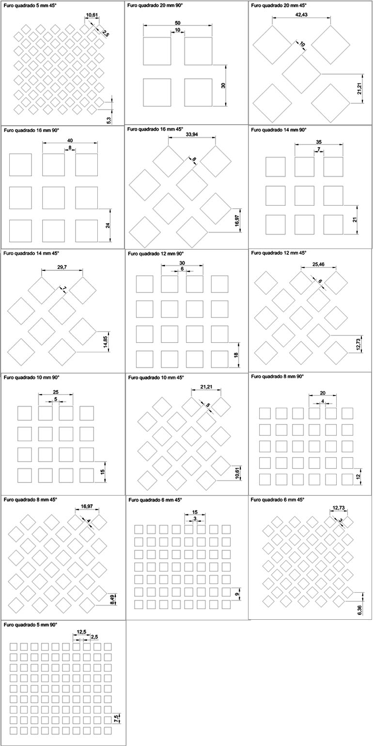 Podem ser perfuradas em uma ampla seleção de disposições, como Paralela, Diagonal, Longitudinal e Transversal.